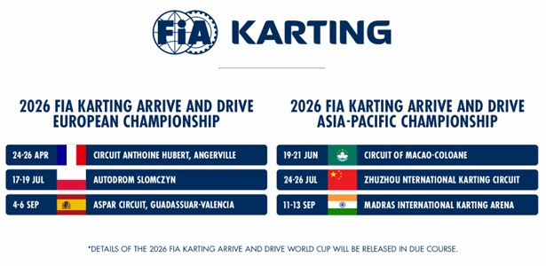 LO Schweizer Kart Meisterschaft 2026 1. Lauf 29. März Franciacorta (ITA) 2. Lauf 19. April 7 Laghi (ITA) 3. Lauf 31. Mai Levier (FRA) 4. Lauf 12. Juli Lonato (ITA)5. Lauf 23. August Cremona (ITA) 6. Lauf 10. Oktober Wohlen (CH)
