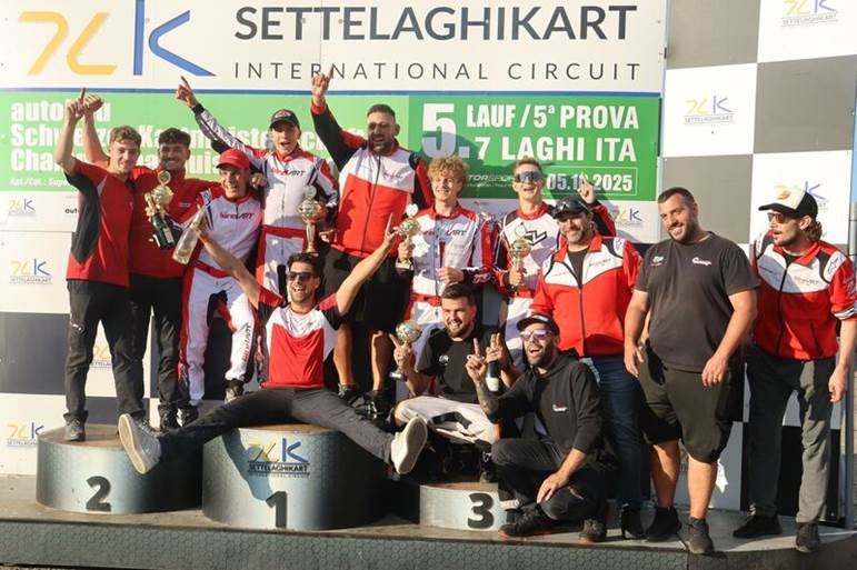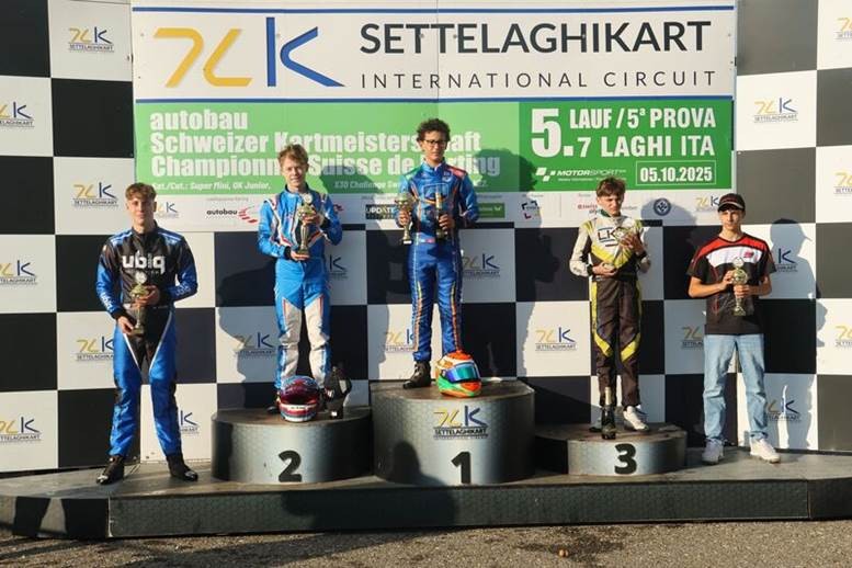 sechs Kategorien wurden die Pokale für die Besten des Jahrgangs 2025 vergeben. Die autobau Schweizer Kart-Meisterschaft 2025 hat auch dieses Jahr unterhaltsamen und spannenden Sport auf hohem Niveau geboten. Dass am Ende des Jahres die Besten der sechs Kategorien ausgezeichnet werden, ist natürlich Ehrensache. Der Rahmen für die diesjährige Meisterschafts-Feier bot wie im Vorjahr das «Trafo Baden». Bei den Jüngsten, den Super Minis, durfte Aaron Buhofer vom Team Spirit Racing den grössten Pokal in Empfang nehmen. Der 13-jährige Birmensdorfer setzte sich in seiner Kategorie souverän gegen Nicolas Yerly (Swiss Hutless) und Romeo Epifanio (Innovate Competition) durch. In der Kategorie OK Junior war es Iven Ammann vom Team Innovate Competition, der sich über seinen ersten Meistertitel freuen durfte. Der 14-jährige Thurgauer hielt in seiner Kategorie trotz viel Pech im letzten Rennen dem Druck von Super-Mini-Vorjahresmeister Nicola Mateo Frigg (UBIQ Racing) stand. Platz 3 bei den Junioren sicherte sich Privatbewerber Marc Müller.