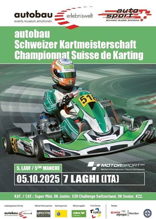 ![]() Am 05. Oktober findet der fünfte Lauf der autobau Schweizer Kart Meisterschaft in 7 Laghi statt – sei auch du mit dabei! Nach dem Rennen ist vor dem Rennen. Kaum ist der vierte Lauf der autobau Schweizer Kart-Meisterschaft 2025 in den Geschichtsbüchern, schweift der Blick nach vorne – zum Finale in 7 Laghi/ITA am 05. Oktober 2025. Für alle, die diesen Event nicht verpassen wollen, sind die Einschreibungen per sofort offen über www.go4race.ch Der Nennschluss ist am Sonntag, 28.09.2025 / 24h00! Sei auch Du mit dabei und fahre mit vielen