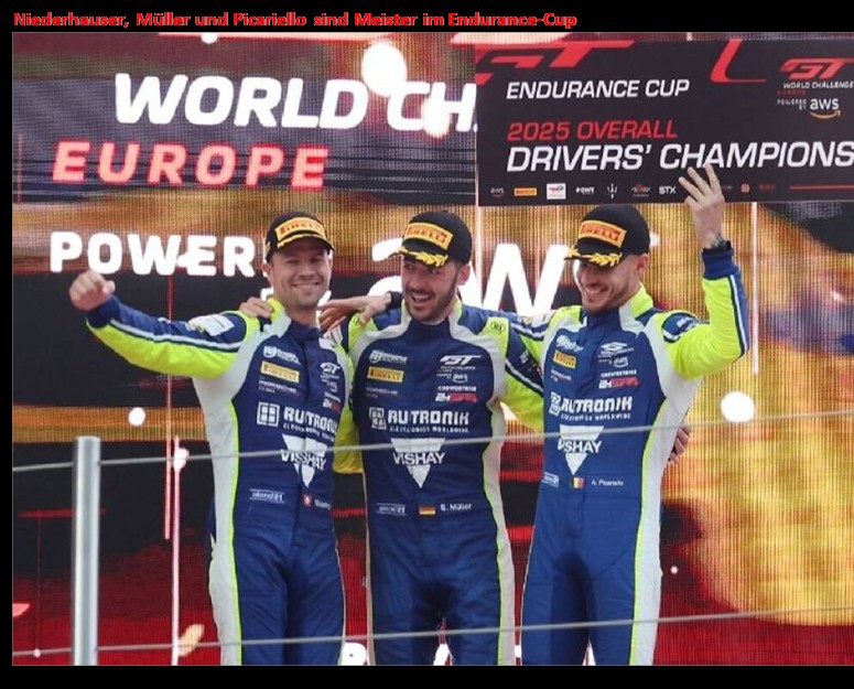 der GTWC Europe nach Barcelona gereist, geriet jedoch früh unter Druck. Der Winward-Mannschaft stand am Ende ohne Titel da. Eine Zeitstrafe und mangelnde Pace warfen die "Mamba" zurück. Rutronik nutzte die Gelegenheit: Picariello startete stark und machte mehrere Positionen gut, ehe Müller und schließlich Niederhauser übernahmen. Im letzten Stint lag der Porsche auf Platz zehn - drei Positionen fehlten zum Titel. Niederhauser kämpfte sich nach
